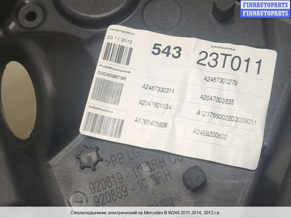Компания FINNAUTOPARTS занимается продажей контрактных (б/у, бывших в употреблении) запчастей для иномарок. В нашей компании продаются только оригинальные запчасти из Европы, Японии и Кореи, которые не имеют пробега по РФ. Если вы хотите приобрести стеклоподъемник (задний правый) для а/м Мерседес Бенц Б (246 кузов), смело обращайтесь в нашу компанию. Все наши менеджеры — профессионалы своего дела, и с удовольствием помогут вам купить запчасти, в том числе, стеклоподъемники задние правые, на Mercedes-Benz B (W246) и другие автомобили.
