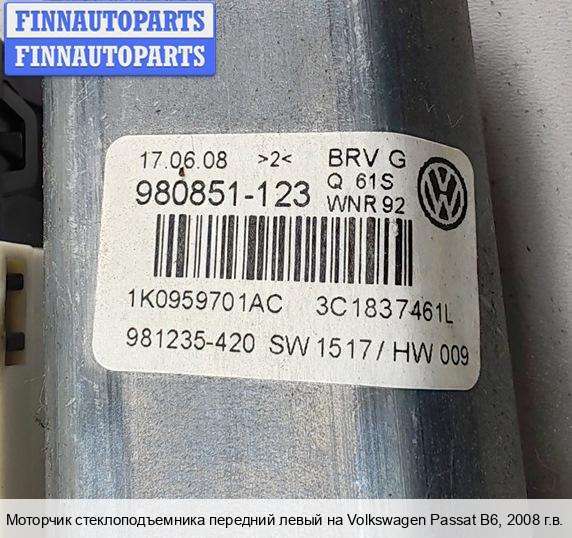| Моторчик стеклоподъемника передний левый | Volkswagen Passat B6 |
